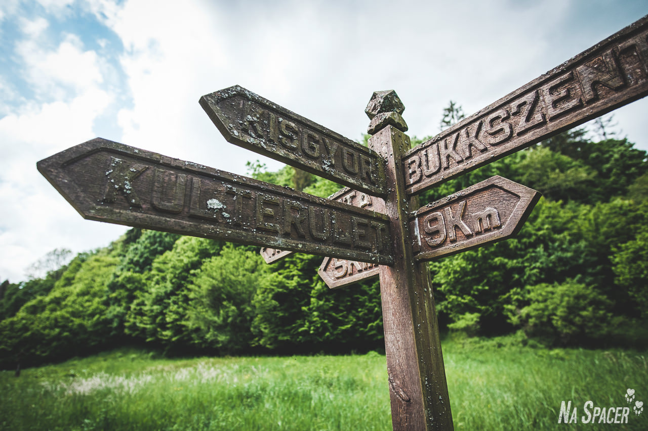 Plan na pierwszy dzień zakładał przejażdżkę klimatyczną kolejką wąskotorową, będącą lokalną atrakcją nie do przegapienia. Jako samotny turysta z psem wyróżniałem się mocno na tle wycieczek szkolnych i grupek dziarskich emerytów, ale reakcje współpasażerów na Zmorę były bardzo pozytywne. Następnie pomaszerowaliśmy znakowanym szlakiem Parku Narodowego Gór Bukowych, poprzez wysoko wyniesiony wapienny płaskowyż. Apropos znakowania – Węgrzy są bardzo kreatywni w wymyślaniu symboli wyznaczających szlaki, ale trzeba przyznać, że dysponując mapą kupioną na miejscu i rozglądając się w miarę uważnie – trudno się u nich zgubić. Trasę tego dnia dobrałem tak, by móc od czasu do czasu wyjść z lasu na szczyt pozwalający podziwiać okolicę, a dzień zakończyć w Barlangszállás (jaskinioszałasie) pod szczytem Cserepes-kő, jako że jeszcze nie miałem nigdy okazji nocować w tak oryginalnym (a zarazem bardzo przytulnym!) miejscu.