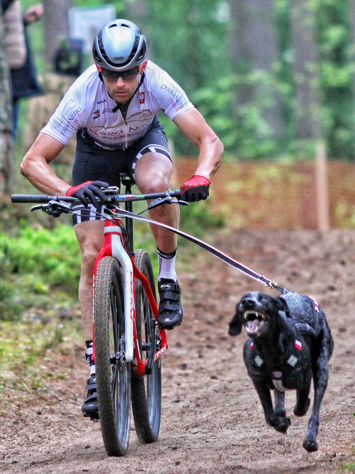 Korba, jeszcze tydzień temu miała mleko w cyckach, bo roiła sobie ciążę, ponieważ mój najszybszy pies Pussy leży w domu i czeka na szczeniaki, to młodsza Korba też chciała… nie jest w szczycie formy, ale od startu przez pierwszy kilometr płynąc na totalnie sztywnym levelu TE przez lekkie dziury z licznika nie schodziło 45km/h, przelatujemy przez mostek… i tu korba się zawahała, ja też nie byłem pewny, co ona zrobić, ale czasu na reakcję mamy z reguły mniej niż sekundę, lekkie zblokowanie tylnego koła, komenda “prosto!” i Korba leci dalej, ostry zakręt w prawo i ściana. Ściana piachu redukcja biegów, tętno maximum, gdyby nie pomoc psa z życiu bym tam nie podjechał sam, lekko w lewo i kolejna ściana, potem zjazd, piasek po osie, czujność na zjeździe, kierownicą lekko potrzepało, i całą moc w korby, a i Korba cała moc w linę ciągową, wyprzedzamy kilka innych teamów i kończymy wyjechani do zera pierwszy etap z najlepszym czasem. Za nami 9 sekund doskonały Ridas Karska z Litwy, 0.5 sekundy za nim Boris Roshko lokales. 20 minut przerwy i biorę hulajnogę zamiast roweru oraz Jamala i Carbona, utrzymać te skurczybyki przed startem to wyzwanie dla Agnieszki i Alexa… ciśniemy wspólnie do mety na tej samej 5kilometrowej pętli co chwilę wcześniej, nogi bolą, ręce bolą, wyprzedzamy bez problemu inne zaprzęgi, każde kolejne odbicie boli, zagryzam zęby, Jamal i Carbon robią najlepszy czas, wygrywamy i ten etap, pokonując nawet mistrzowskie fińskie i rosyjskie zaprzęgi 4 i 6 psie.