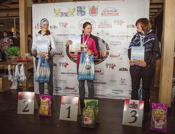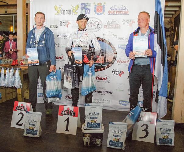 Nie ma czasu na sen… o 12.00 prowadzę seminarium, jak trenować z psami zaprzęgowymi… o 19.00 kolejne dwa wyścigi, Jamal i Carbon ze mną na hulajnodze wygrywają ponownie, na rowerze już zmęczony tracę z Korbą tylko 0.5 sekundy do Borisa Roshko, ale przewaga 10 sekund z pierwszego etapu daje mi pewną wygraną. To był mój pierwszy start w życiu z Korbą w bikejoringu – dziewczyna zdała egzamin na 5+ 🙂