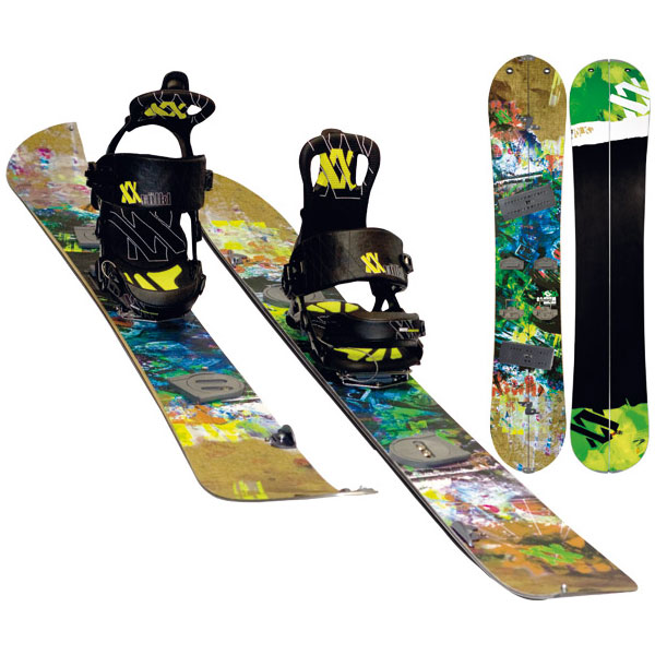 splitboard – na rynku jest coraz więcej „skiturowych desek” – na czas podejścia rozczepia się je na dwie części, na których możliwe jest podejście,