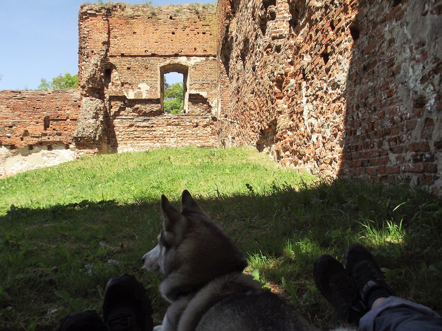 Szliśmy pieszo, więc nie mieliśmy z tym żadnego kłopotu 😉 Dojazd do Brodnicy pociągiem z przesiadką w Jabłonowie Pomorskim upłynął w pustym przedziale i miłej atmosferze, zwłaszcza, że ujmujący Pan Konduktor już od wejścia zapowiedział, że dopóki Nel jedzie z nim, może mieć zdjęty kaganiec 🙂 (Jej wdzięczność – niewysłowiona 😉 )