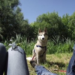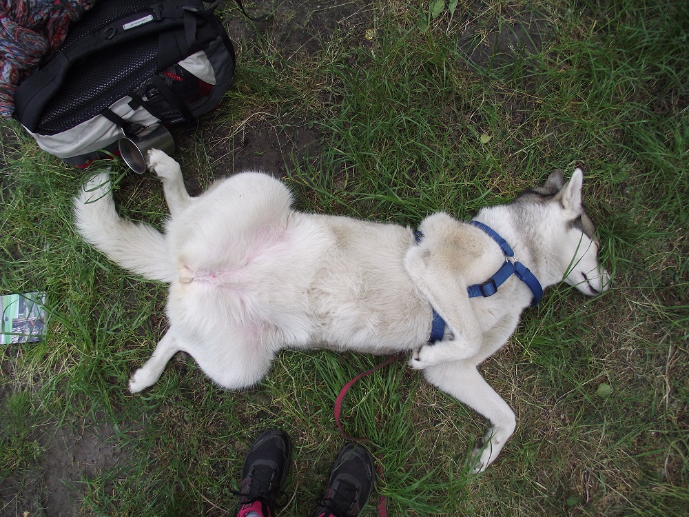 Przez 4 dni przeszliśmy z Brodnicy do Torunia ok. 80 km, czyli po ok. 20 km dziennie – głównie malowniczymi polnymi i leśnymi drogami, ale zdarzały się i odcinki asfaltu. Nel nie była nimi zachwycona, bo nudno, w łapki grzeje i co jakiś czas trzeba ustępować samochodom. Najlepiej układać sobie trasę tak, żeby asfalt przejść rano lub pod wieczór.