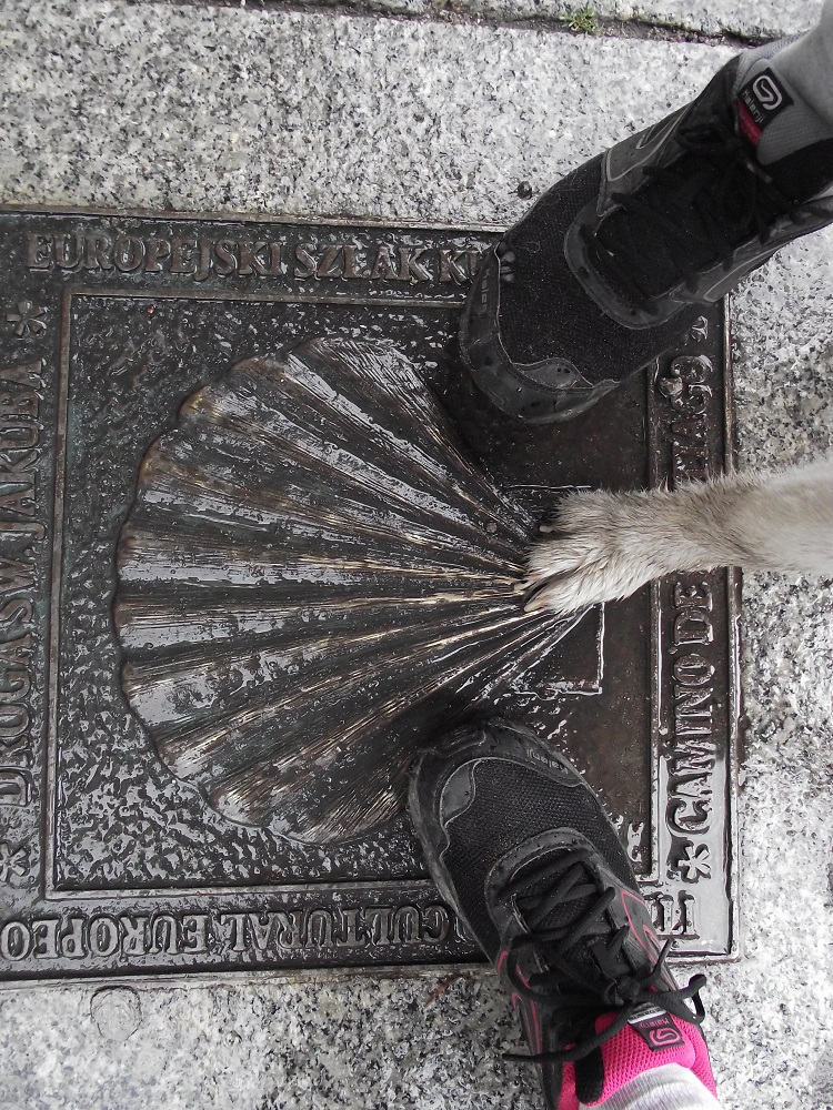 W Toruniu kończył się nasz czas i szlak. Ostatnią muszelką była dla nas ta na chodniku, przed kościołem Św. Jakuba na toruńskim Rynku Nowomiejskim. Znad bramy, z barokowej rzeźby rzucał nam znaczące spojrzenie drewniany św. Jakub we własnej osobie. Czy kiedyś odwiedzimy go tam „u niego” – w hiszpańskiej katedrze? Kto wie 🙂 Plan dojrzewa. W końcu wędrowanie nie kończy się, kiedy zatrzymują się stopy i łapy. Podróż trwa. Ta „w głąb”. Co dzień korzystamy z doświadczeń, które „w drodze” działają mocniej – ucząc się od siebie nawzajem i od Nel: cierpliwości, a czasem odpuszczania, beztroski i troski, odpowiedzialności i leżenia do góry brzuchem… Z takim zestawem – jesteśmy przekonani – każda droga jest do przejścia. Bo tak naprawdę – to droga jest celem.