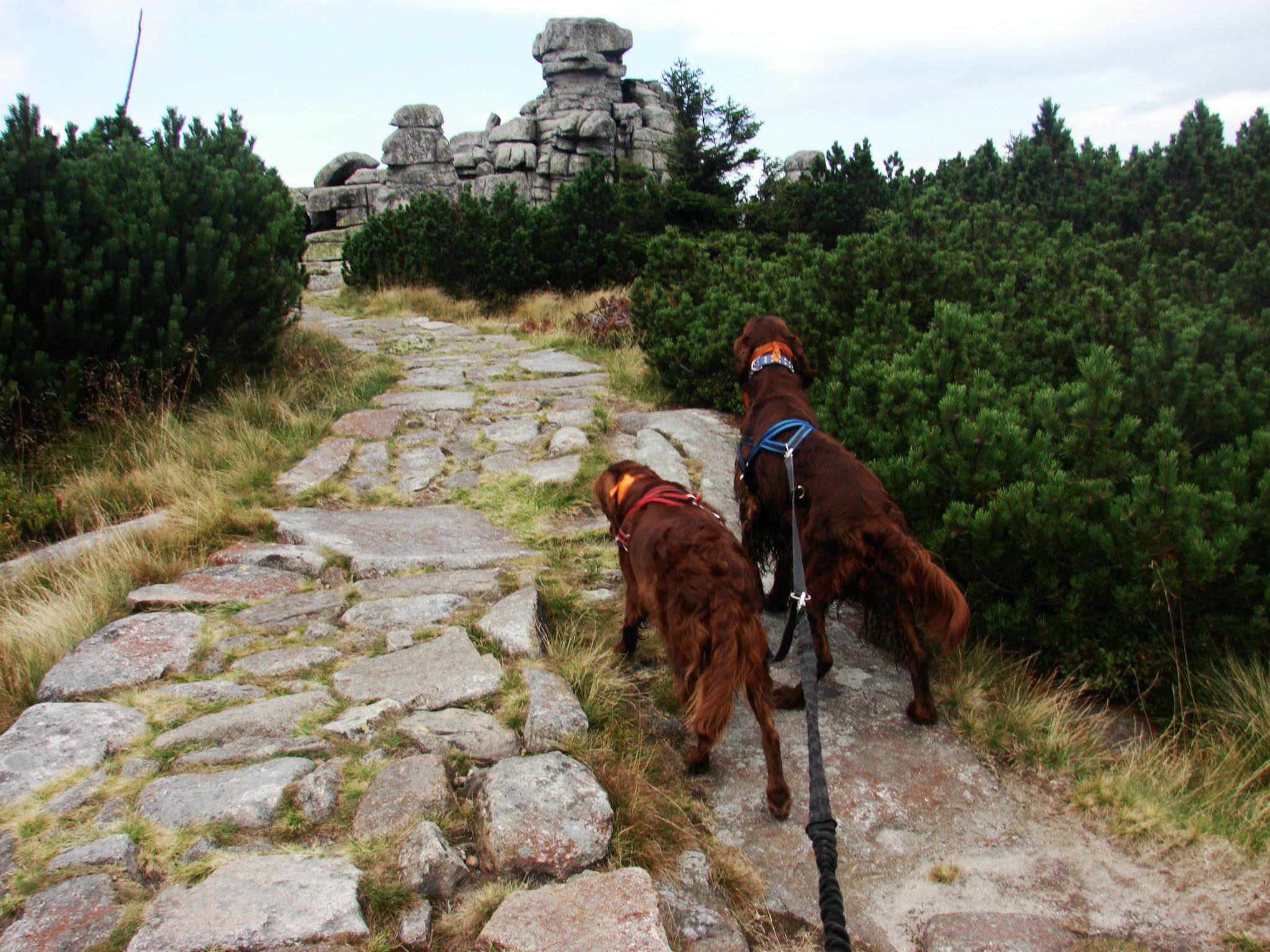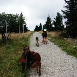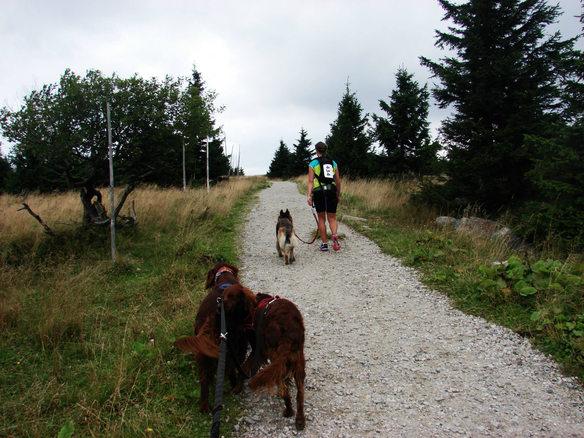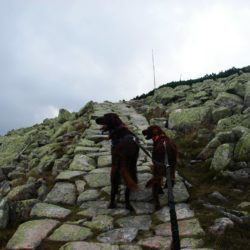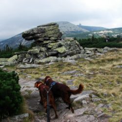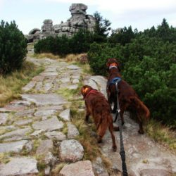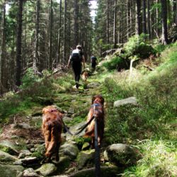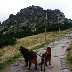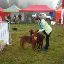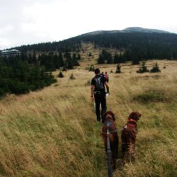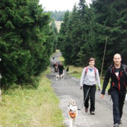 W sobotę w dogtrekkingu w Przesiece wzięło udział 70 zawodników, na trzech dystansach: mini 17 km, mid 26km i long 40 km. Pogoda dopisała tym którzy zmieścili się w czasie 6 godzin a tych którzy szli dłużej trochę pokropił deszcz. Jak wiadomo w górach pogoda bywa zmienna ale na wręczaniu dyplomów i nagród znów zaświeciło słońce. Szlaki w Karkonoszach są naprawdę warte odwiedzenia i można tu spacerować z psami.