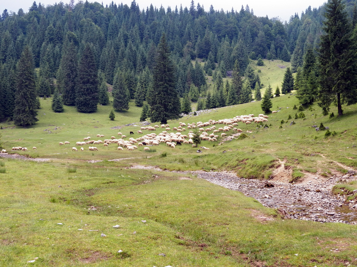 Na polanie normalnym widokiem są wolno wypasane konie, krowy oraz owce. Kilka razy dziennie słychać dzwoneczki, które informują o zbliżającym się stadzie owiec, prowadzonych przez pasterza i psy pasterskie. Niska trawka, strumyk i duża przestrzeń to idealne miejsce na wybieganie psa i kemping. Jeżeli pupil jest nieuciążliwy to nie spotkamy się z nieprzyjemnościami ze strony Rumunów, mają bardzo fajne podejście do psów i przez większość czasu nie musieliśmy używać smyczy.