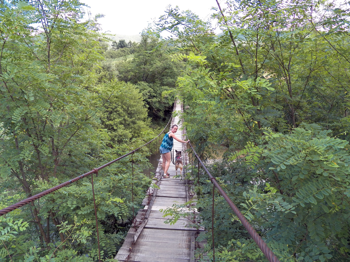 Po kilku dniach wyruszyliśmy dalej na południe w stronę Parku Narodowego Cheile Nerei-Beusnita, po drodze zatrzymując się przy zamczysku w Hunedoarze. Roślinność tego regionu i pogoda kojarzy się już z pobliską Serbią. Na nocleg dojechaliśmy do prywatnego kampingu Valea Beiului. Z niego zwiedzaliśmy wodospady: Beusnita, jeziorko Ochiul Beiului, kaskadę Vaioagę, szlak prze tunele i półki skalne do Sasca Romany oraz wodospad Bigar. W tym parku było znacznie więcej turystów, ludzie z miasta podjeżdżający na szybkie wycieczki do wodospadów. Przez większość czasu Zira szła na smyczy, często prowadzona blisko przy nodze; ludzie bali się tam psów, zatrzymywali się, usuwali na bok – takie nerwowe zachowanie dało się też odczuć naszej suce więc postanowiliśmy pojechać tam, gdzie czujemy się najlepiej, gdzie jest dużo przestrzeni i są góry.