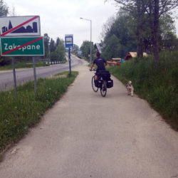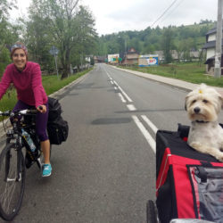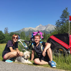 Podróż dookoła Tatr z Bakarą (suczką w typie polskiego owczarka nizinnego, która przeszła z nami metamorfozę po tym, jak adoptowaliśmy ją ze schroniska 🙂 ) była spontanicznie zaplanowaną przygodą. Kochamy rowery od zawsze, dlatego jak tylko pojawiła się Bakara nie mieliśmy zamiaru rezygnować z naszej pasji. Szybko znaleźliśmy rowerowy pojazd dla Bakary – przyczepkę, z którą równie szybko się zaprzyjaźniła. Podróż dookoła Tatr była naszą pierwszą wyprawą z psem. Po krótkich, ale intensywnych przygotowaniach, 4 czerwca nad ranem zapakowaliśmy rowery wraz z przyczepką do auta i wyruszyliśmy z rodzinnego miasta –Przemyśla do Zakopanego. Już o 10 rano rozpoczęliśmy naszą wspólną przygodę. Oczywiście na rowerach wieźliśmy nasz czterogwiazdkowy hotel – namiot, więc nie mieliśmy żadnych problemów z noclegiem. Bakara okazała się być najlepszym grzejnikiem na świecie – zwłaszcza, gdy nocowaliśmy na Słowacji na wysokości około 1000 m – było naprawdę zimno. W czasie podróży Bakara była w swoim żywiole, dostarczała nam mnóstwo wesołych chwil. W trudniejszych momentach trasy – sporo długich podjazdów – Bakara posłusznie biegła (a raczej szła, bo w tych momentach nasza prędkość nie przekraczała 5km/h 😉 ) obok rowerów. Gdy tylko się zmęczyła wskakiwała z powrotem do przyczepki, w której się wylegiwała. Choć wyjazd nie był najdłuższy był dla nas wspaniałą, niezapomnianą przygodą. I choć mogło by się wydawać, że tego typu wyjazdy z psem dostarczą tylko dodatkowych kłopotów, to jedyne co nam dostarczała Bakara to był ciągły uśmiech na twarzy!