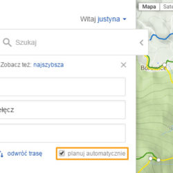 – wyszukiwanie trasy w oparciu o podane punkty; punkty można wybrać z mapy lub znaleźć w wyszukiwarce,