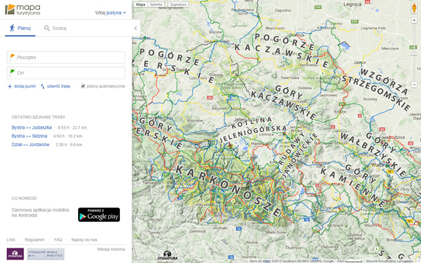 Aplikacja MAPA TURYSTYCZNA – planowanie tras turystycznych w Polskich górach – ultra łatwa obsługa.